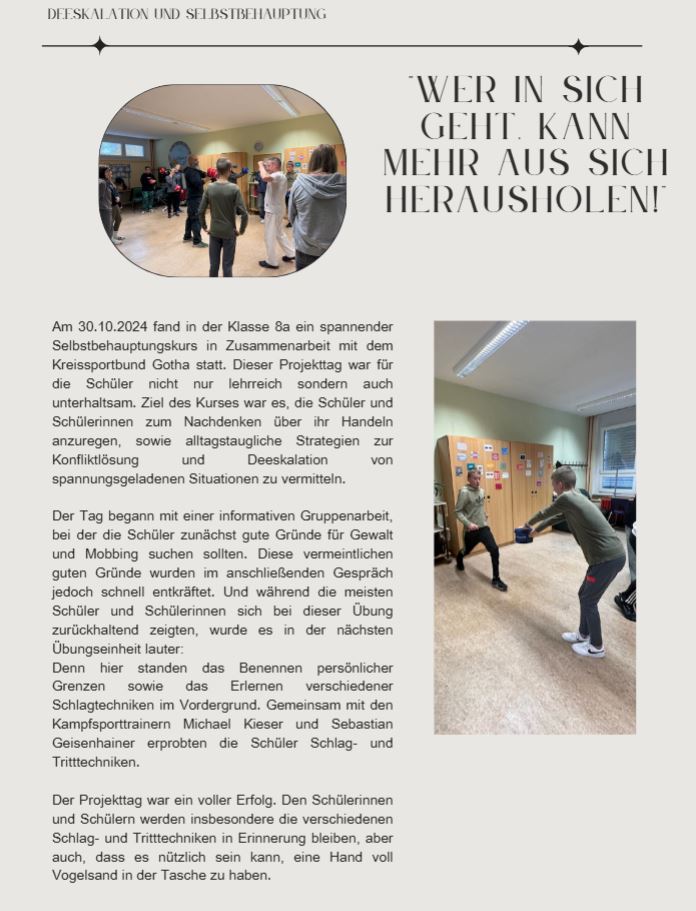 Deeskalation und Selbstbehauptung - Regelschule Crawinkel
