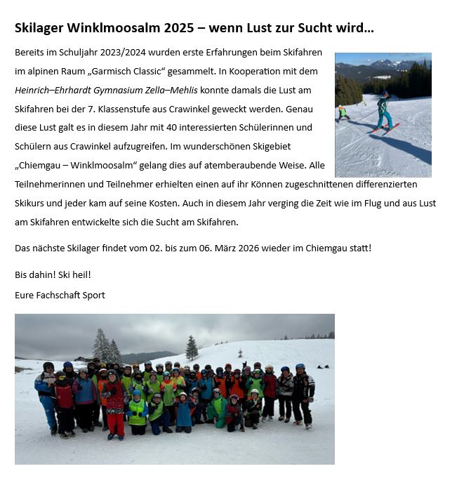 Skilager Winklmoosalm 2025 - wenn Lust zur Sucht wird ... - Regelschule Crawinkel